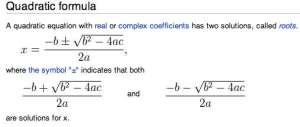 As I listened, I did remember the term quadratic forumla or quadratic equation, but I certainly couldn’t remember how it would be used let alone how to write the formula.