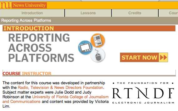 As I listen to Sara talk about the basis of multimedia training is multimedia thinking, I clicked mentally to Reporting Across Platforms, a course that I developed with Judy Robinson and Victoria Lim. The course is a free online training course.
