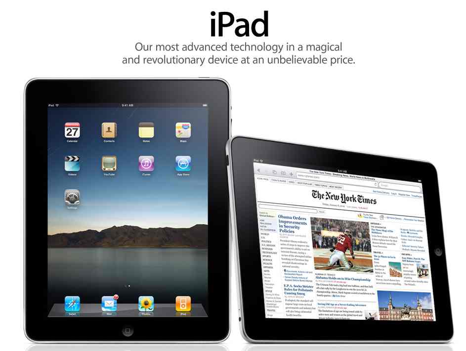 About the size of a sheet of paper (8 1/2″ x 11″) and the width of a magazine, the iPad is very portable but with a much larger screen than the iPhone.