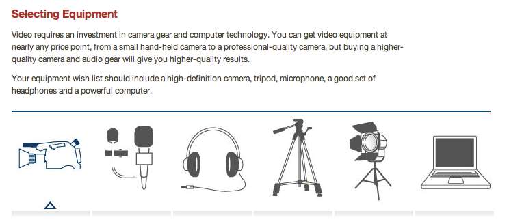 This section of the course provides a brief description of the equipment that is needed for shooting and editing video.