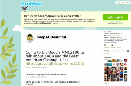 Twitter is one way Keep Alachua County Beautiful is getting the word out about their activities. And my class was one of their activities today.