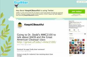 She had participated in a Keep America Beautiful webinar that had discussed how to use Twitter and Facebook in a business setting — moving beyond using the sites to talk about yourself to using the sites to create an awareness of, a following for and an interest in the organization.