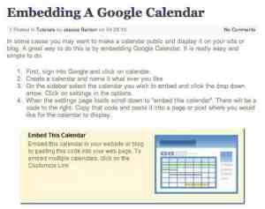 Embedding A Google Calendar – When I read this how-to, I realized this would be a great feature to add to the blog for my class next year. This will be a handy way to have the calendar available online for the students and to be able to update it in a real-time way.