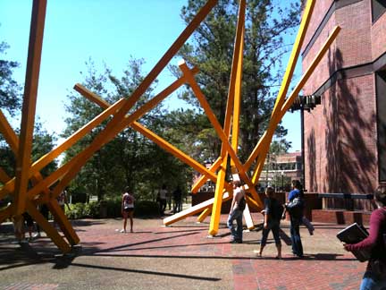 'Alachua' is the official name of this artwork at UF's Computer Science & Engineering Building, but the students refer to it as 'French Fries.' Photo by Julie Dodd