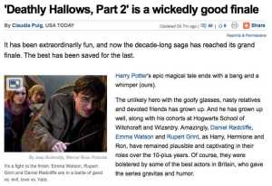 The hours are ticking down to one of the big events of the summer — the opening of Harry Potter and the Deathly Hallows, Part 2. Thousands of fans will be in movie theaters tonight at midnight for the first showing. Millions of us worldwide eventually will watch the movie — but at a more standard viewing time and without wearing robes or carrying wands.