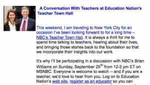 All of those topics plus Melinda Gates’ perspective from the Bill & Melinda Gates Foundation and a stream of thousands of tweets at #TeachersEdnat were part of Teacher Town Hall.