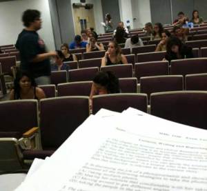 Students receive a Scantron as they come into the auditorium and are directed to sit every other seat and then fill in.