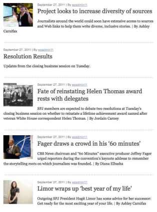Over the course of five days, the SPJ/RTDNA conference had more workshops and panels than I could ever manage to attend. Sometimes two really interesting-sounding sessions are going on at the same time, and you’ll have to make the tough decision — whether you want to go to “Creating Multiplatform Stories” or “How to Turn Your Website Into a Mobile App.” (Yes, those were real sessions at the conference.) The key is to see as much as you can while still remembering to eat and sleep.
