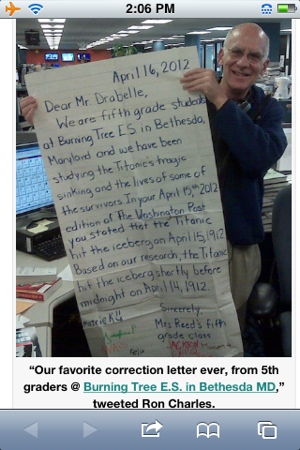 Poynter reported that fifth graders who had been studying the Titanic disaster discovered a fact error a Washington Post reporter made in writing a story about the 100th anniversary of the Titanic’s sinking.