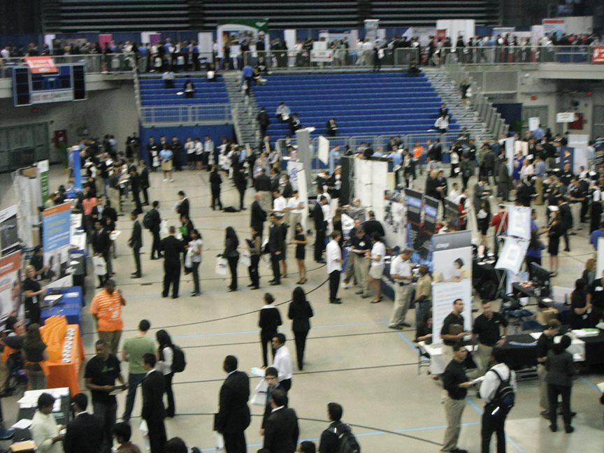 Instead of students in orange and blue in the O’Connell Center, hundreds of students in dark suits were lined up to talk with perspective employers about internships and jobs. More than 250 businesses participated in UF’s Career Showcase.